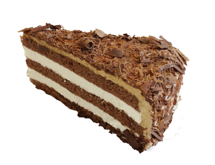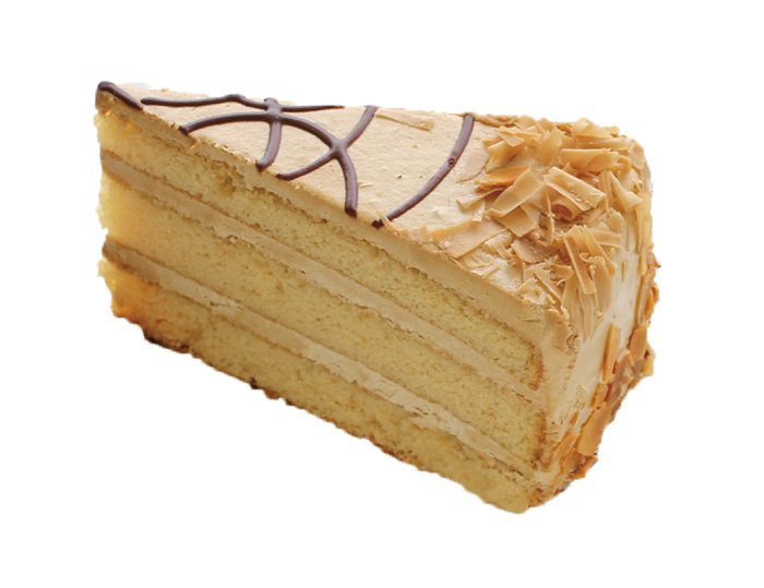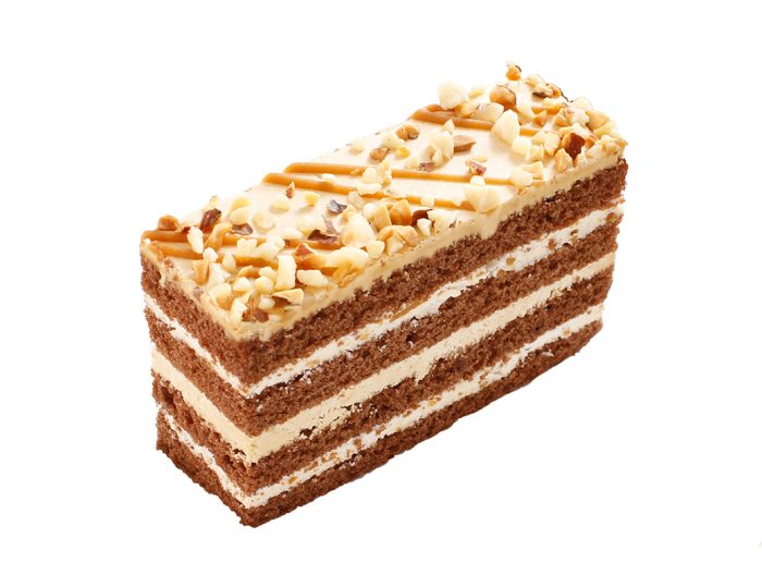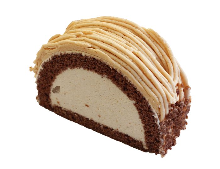 ココアスポンジに香ばしいプラリネ入りホワイトクリームとキャラメルクリームをサンドしました。