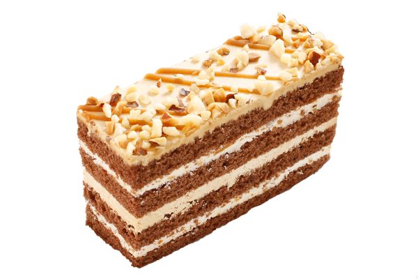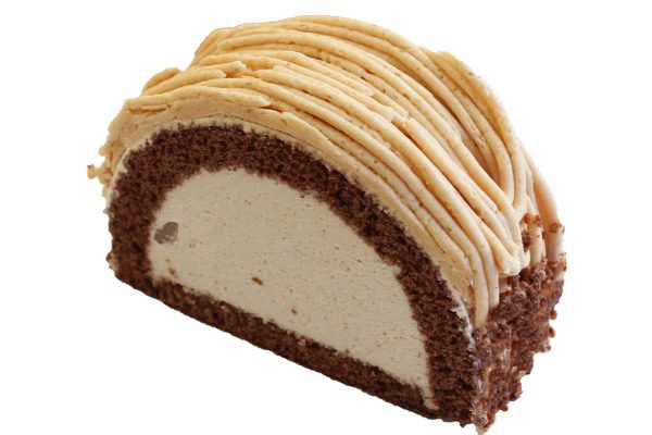 ココアスポンジに香ばしいプラリネ入りホワイトクリームとキャラメルクリームをサンドしました。