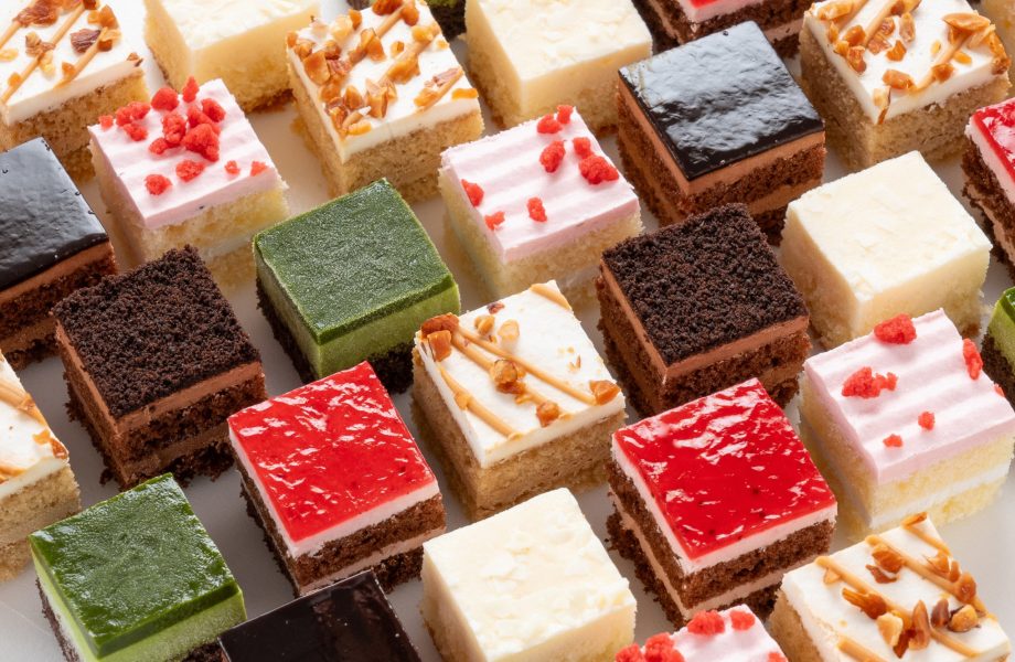 ファミール製菓では、シート状のケーキをひとくちサイズにカットしたシートケーキ、