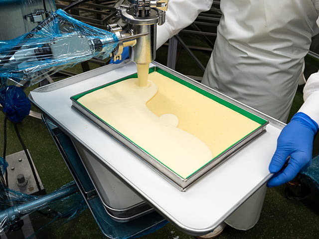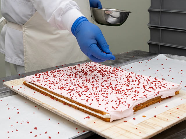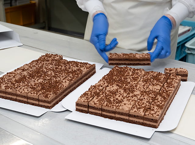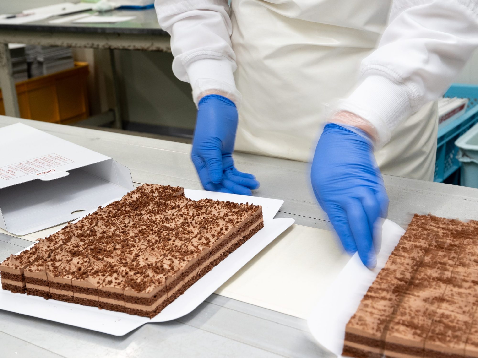 そのほとんどが機械ではなく人の手で行われています。手間をおしまない丁寧なケーキ作りが、ファミール製菓の身上です。
